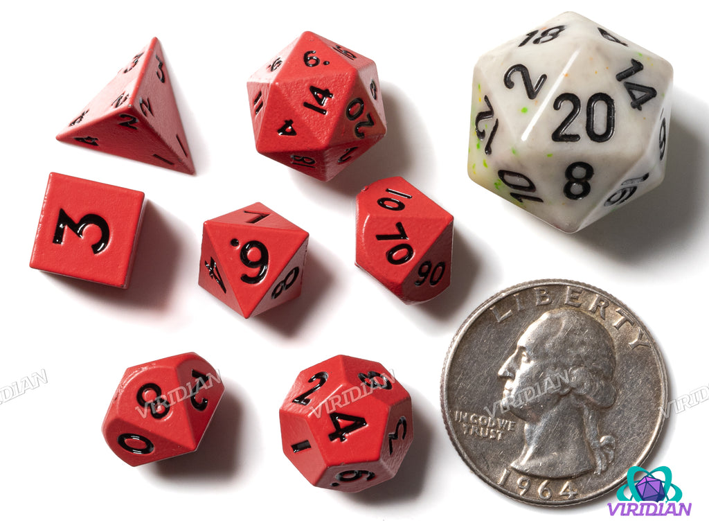 Flat Red w Black (Mini) | Metal Polyhedral Dice (7)