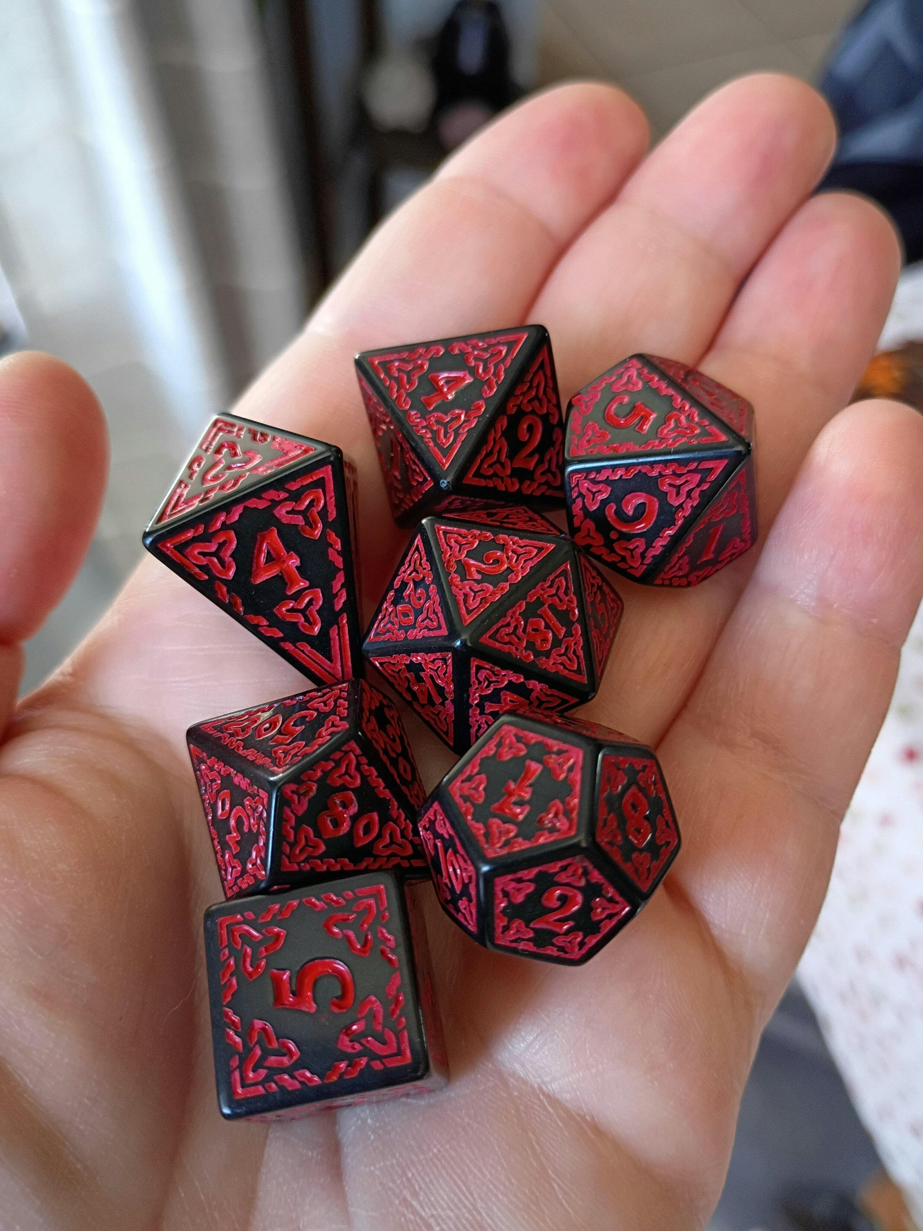Includes: Standard sized D20, D12, D10, D00, D8, D6, modern D4 (as pictured)