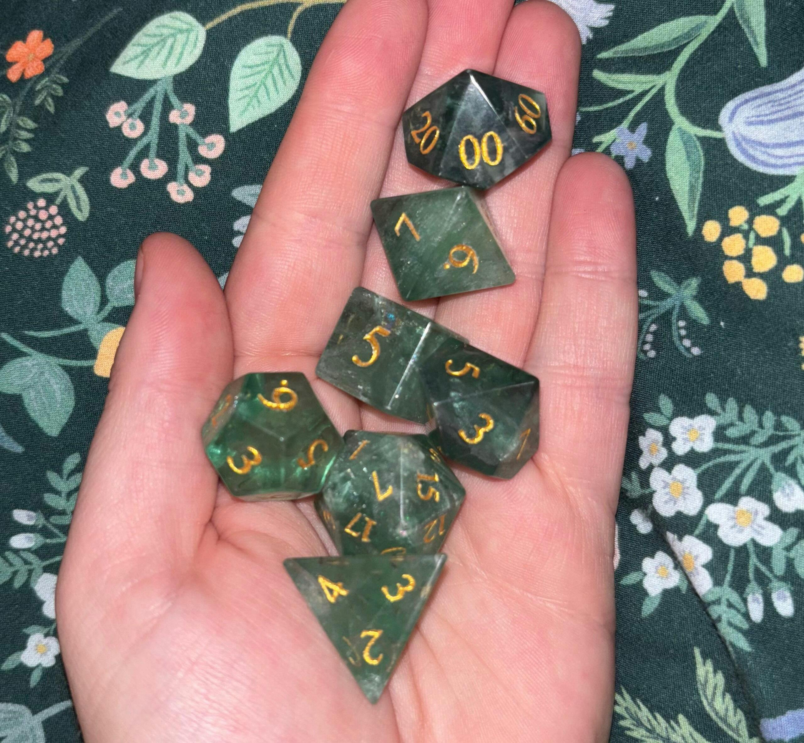 All gemstone dice are made from real stone and will each have their own unique patterns and inclusions/imperfections as they do in nature.
