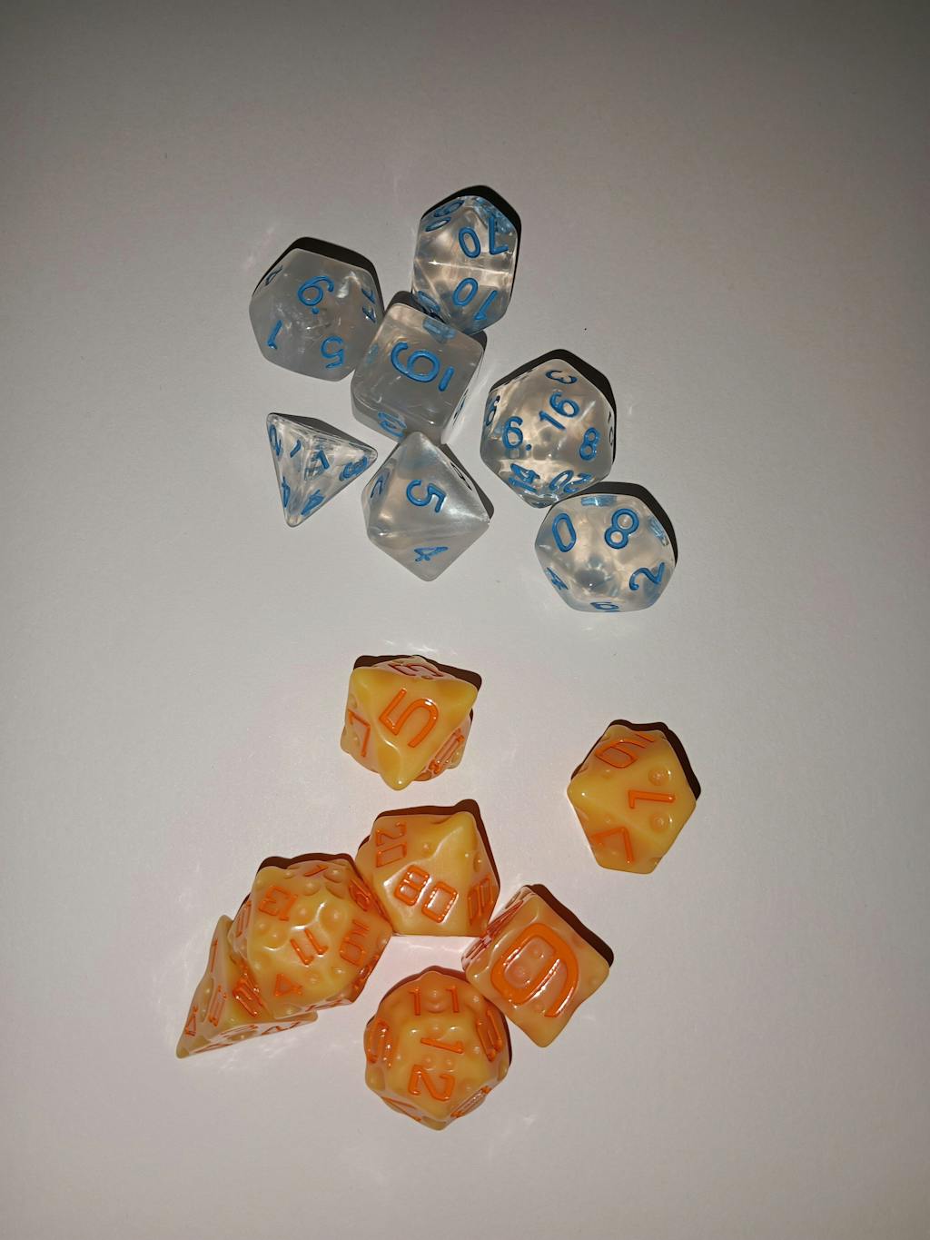 We photograph our dice to be true-to-life (balanced close to daylight around 5600K). We try not to “overglam” our photos, and we do our best to show what you’ll actually receive. That said, screens and lighting can wildly change how colors look. If your dice seem radically different, the quickest reality-check is to view them in natural daylight (near a window or outside), and compare again.