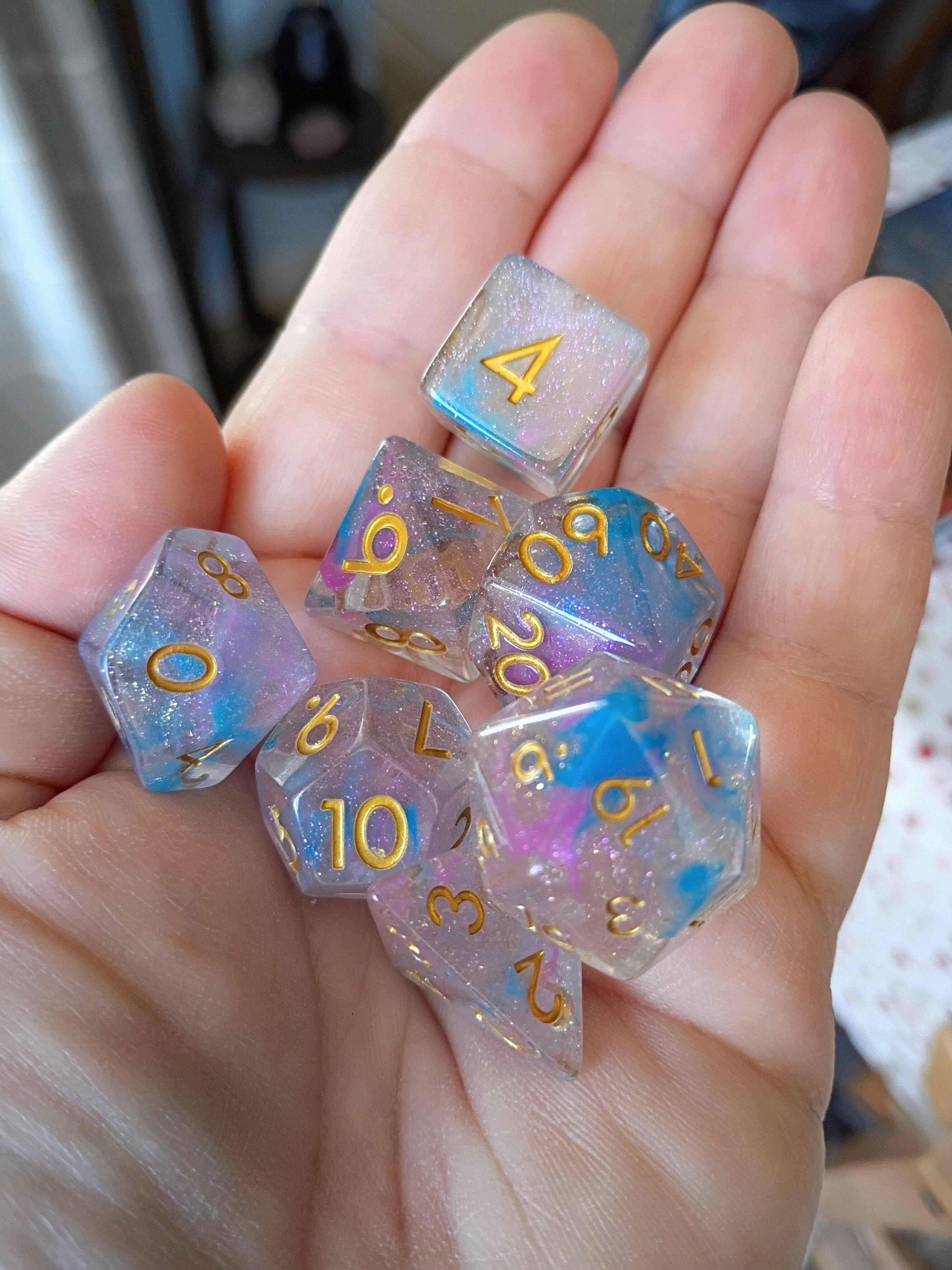 Dice may have minor imperfections (tiny marks, micro-scratches, or small dings, inconsistent inking) from the manufacturing or shipping process. This is normal and usually only noticeable up close. If a product includes randomized effects (color swirls, glitter distribution, etc.), your set will vary from the photos because no two sets are exactly alike.